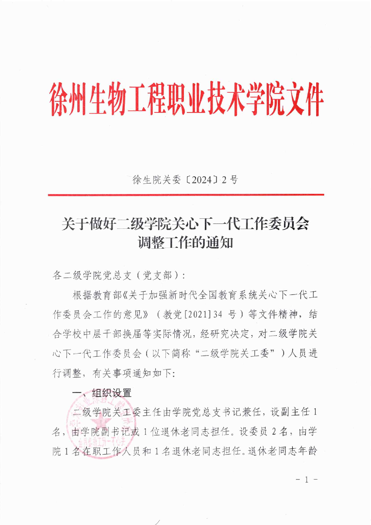 关于做好二级学院关心下一代工作委员会调整工作的通知