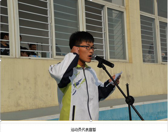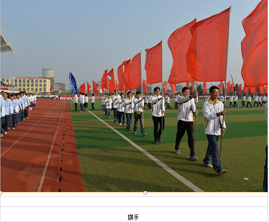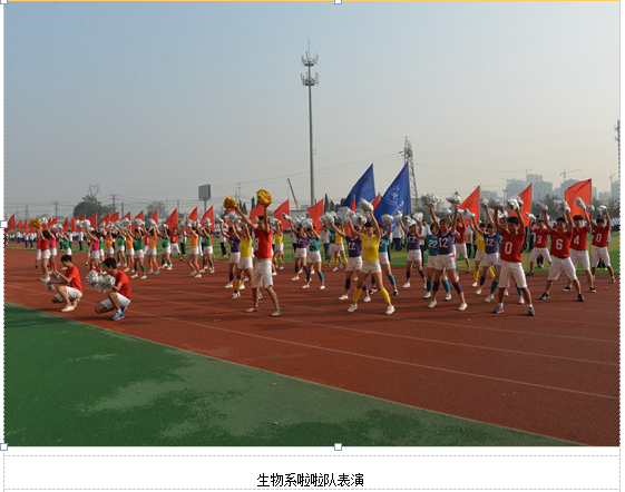 在催人奋进的运动员进行曲中,国旗手们手擎红旗,气宇轩昂、精神抖擞地正步走在崭新的塑胶跑道上,各系方阵身着统一服装,步伐整齐,口号嘹亮,展示了良好的精神风貌。开幕式后大家欣赏了由体育部编排的团体操表演和六系新生广播操比赛。
