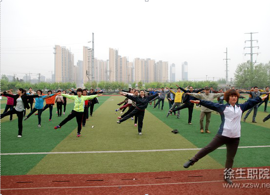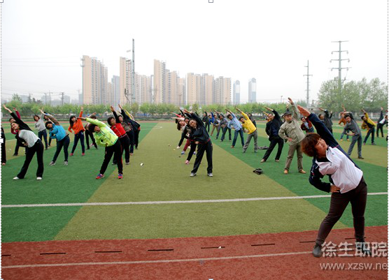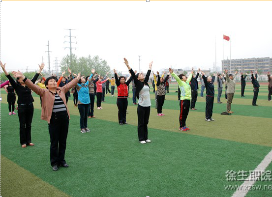 为贯彻落实学院党政提出的“让教职工工作之余身体动起来、体质强起来、心情乐起来”的要求,进一步提高身体素质,自觉养成健身习惯。同时为迎接4月下旬市总工会举办的全市职工广播操比赛,4月11日和14日,我院工会、体育部组织教职工开展第九套广播体操学习普及推广活动,活动受到了老师们的欢迎,近百名教职工利用课余时间在院新体育场学做了第九套广播操。